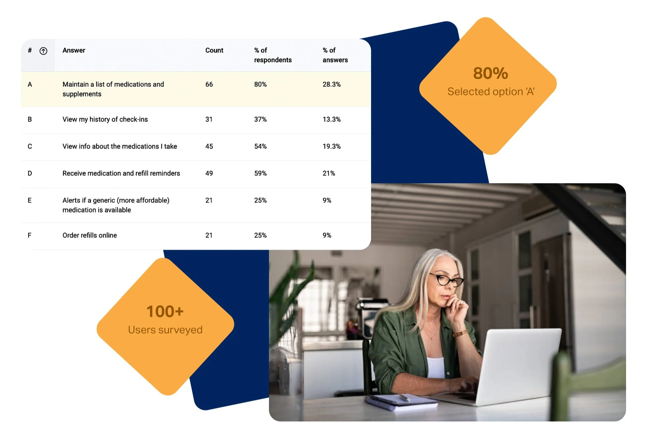 With hotfixes in place, customer support tickets for the med cabinet dropped dramatically. Our next step was to dive deeper into what we can offer our users. I started by taking a step back to find qualitative insights and validate them with a quantitative survey for my team.